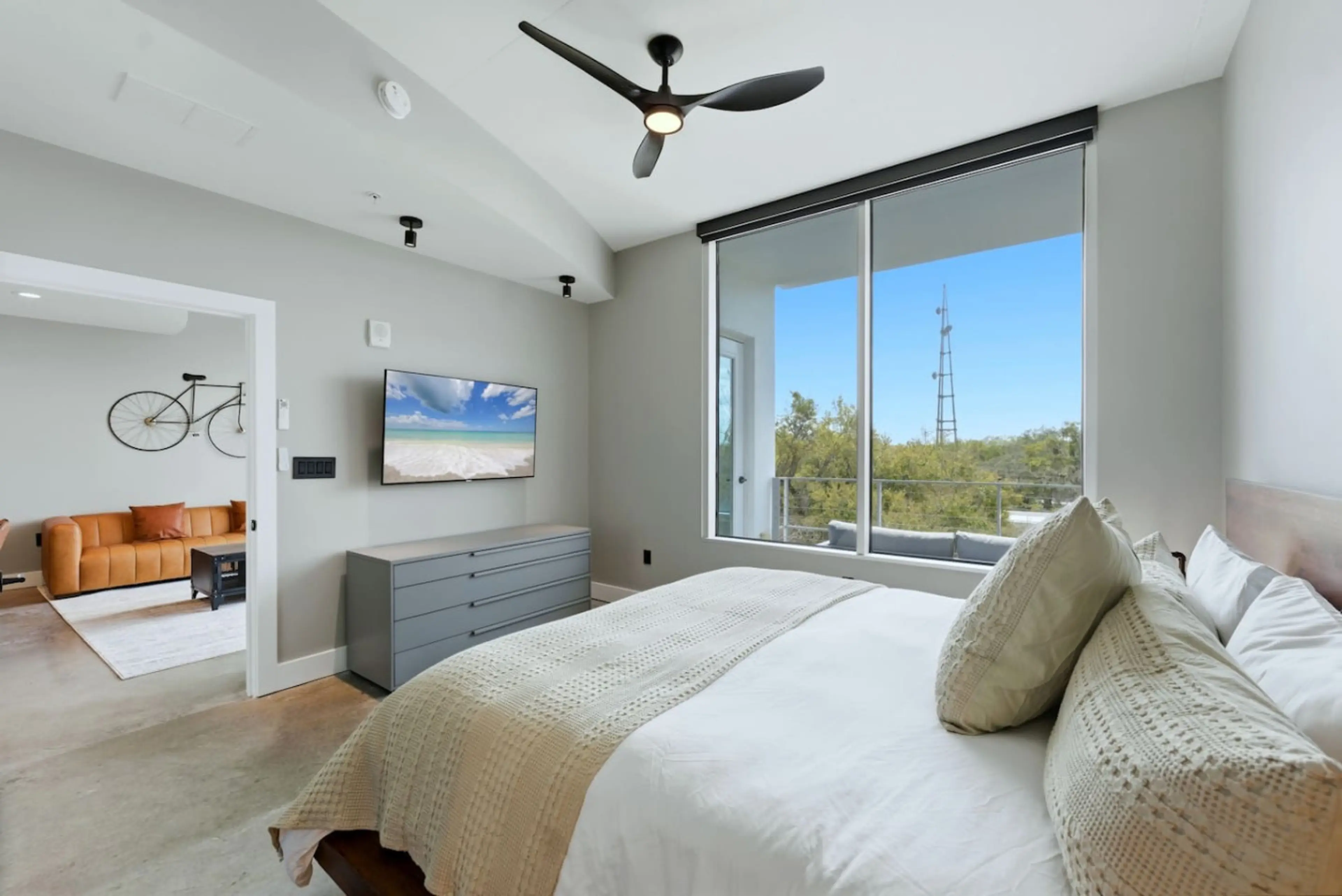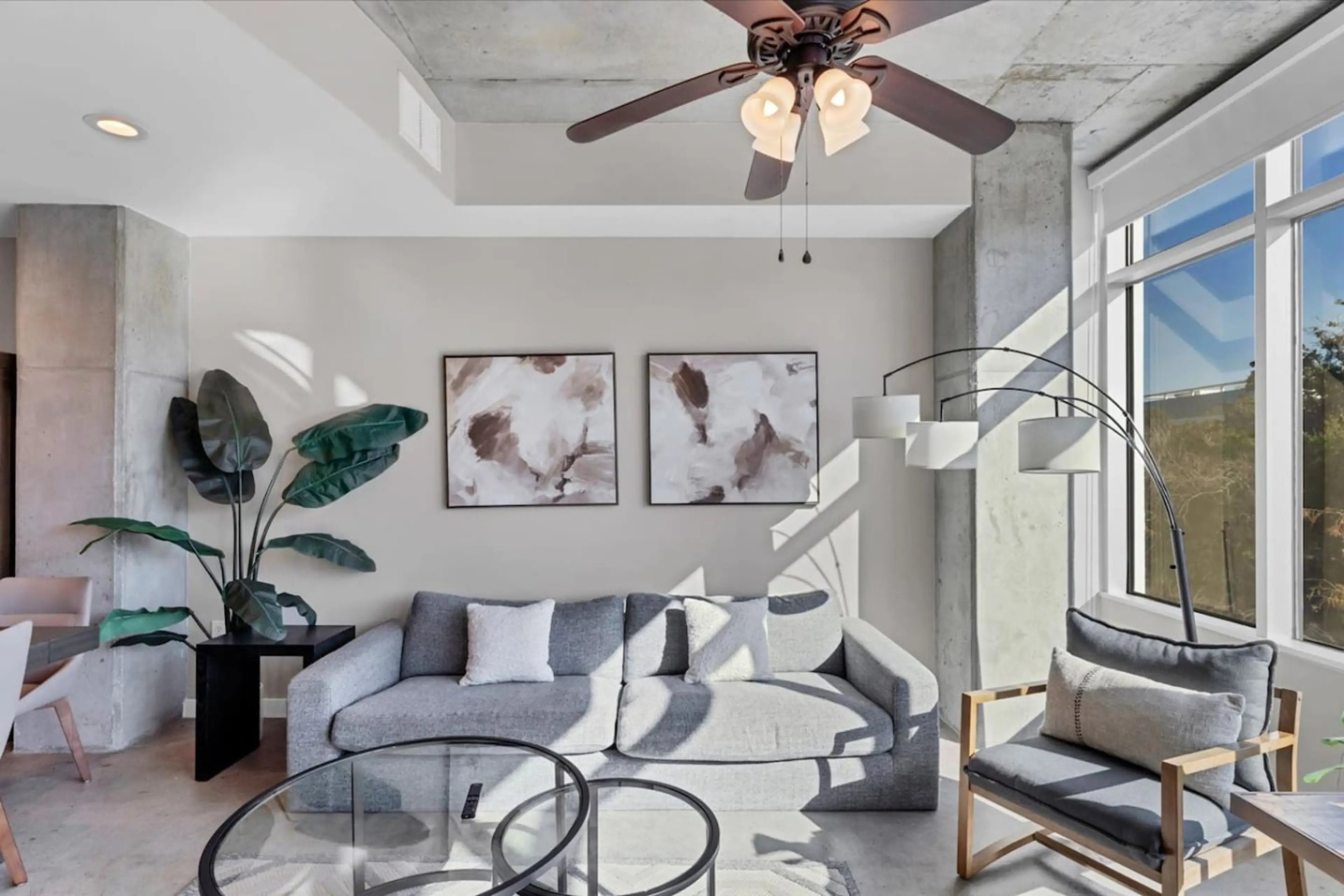 Residences feature an iconic industrial-chic aesthetic, defined by 10-foot exposed concrete ceilings, floor-to-ceiling glass, and sun-drenched open floor plans.